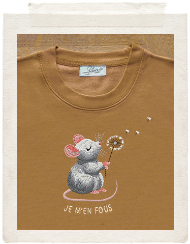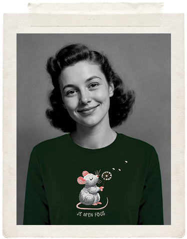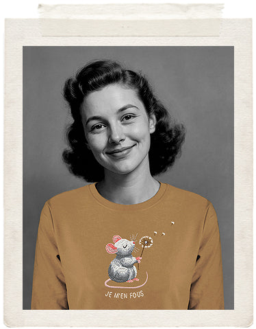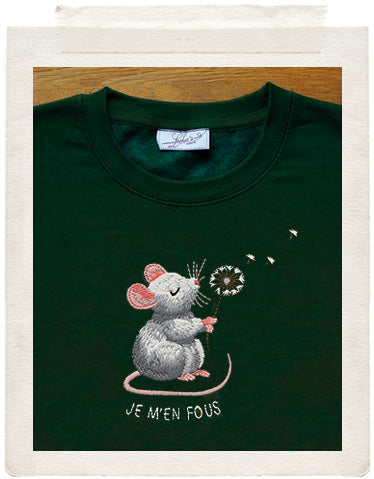 JE M’EN FOUS means “I don’t care” in French. This little mouse doesn’t give a single fuck and flips off her worries one dandelion at a time. Channel your inner “whatever” energy in this sweater but make it in French, because it’s classy when you swear in the language of love.