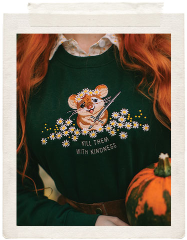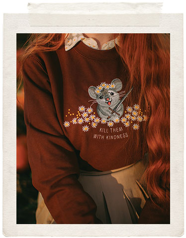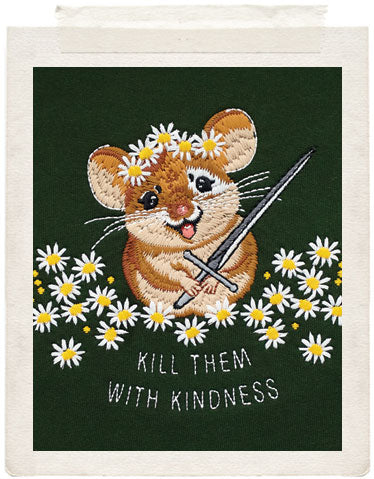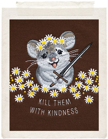 Kindness is the ultimate superpower. I know I know, it feels real good to tell someone to "fuck off" when they get in your face but we believe in fighting those fuckers with a smile can be even better.......hehe, so join our "KILL THEM WITH KINDNESS" club today! Also, can we just please just stop for a second and admire how completely fucking adorably this warrior lil’ mouse is standing in that field of daisies? Omigosh, Omigosh.