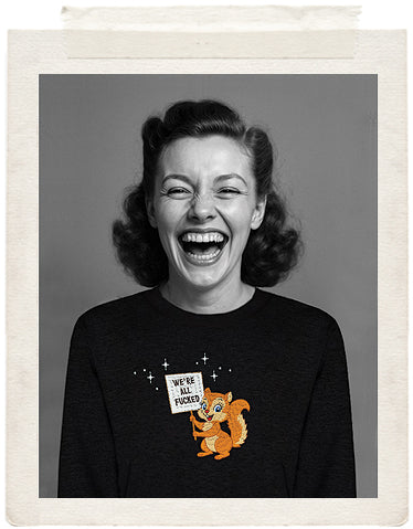 For days when optimism is dead and caffeine’s the only thing keeping you going. This sweater says what we’re all thinking - with a cute face and a middle finger in spirit. Wear it loud, laugh through the chaos and let this cheerful little doomsayer speak for us all.